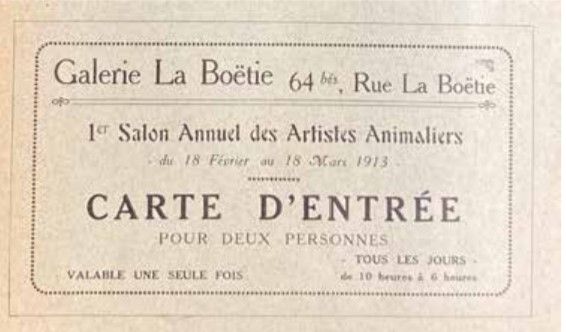 Carte d’entrée de la première édition du salon annuel des artistes animaliers